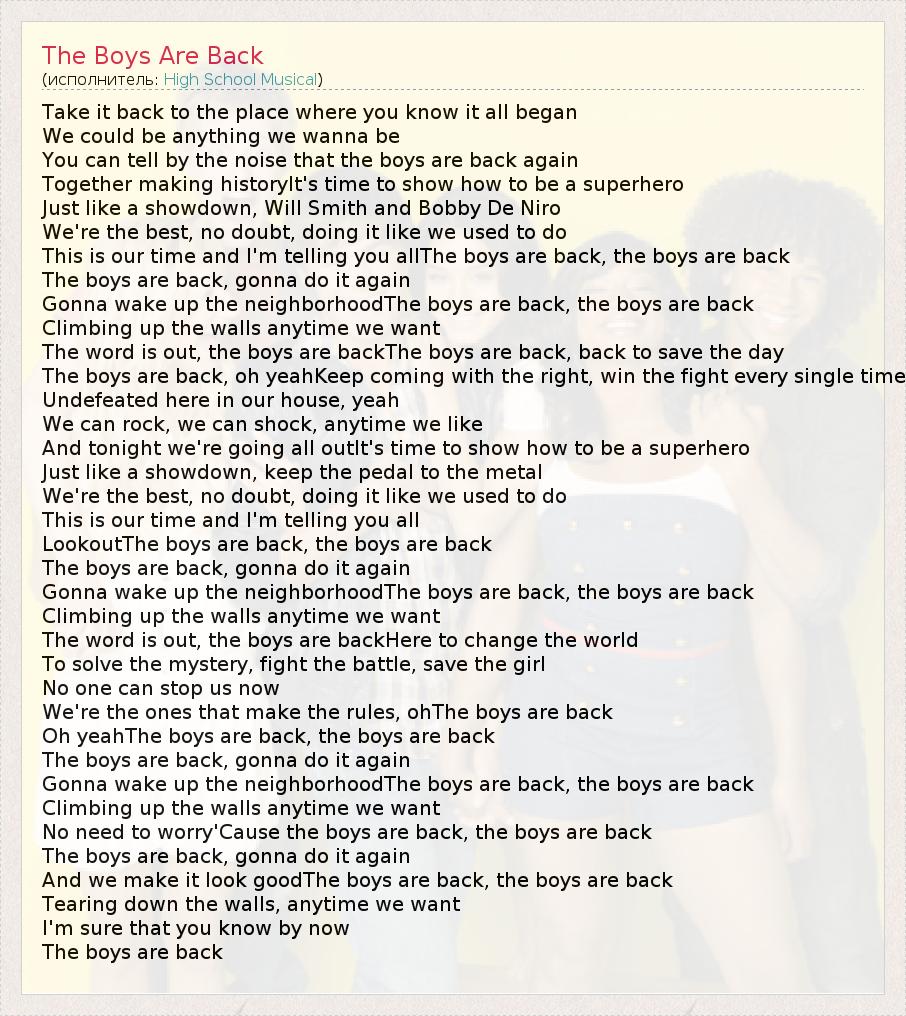 А как ты думаешь, о чем песня "The Boys Are Back" ?