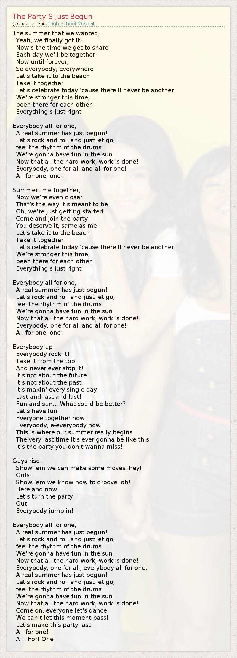 А как ты думаешь, о чем песня "The Party'S Just Begun" ?
