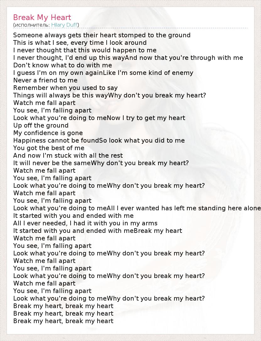 А как ты думаешь, о чем песня "Break My Heart" ?