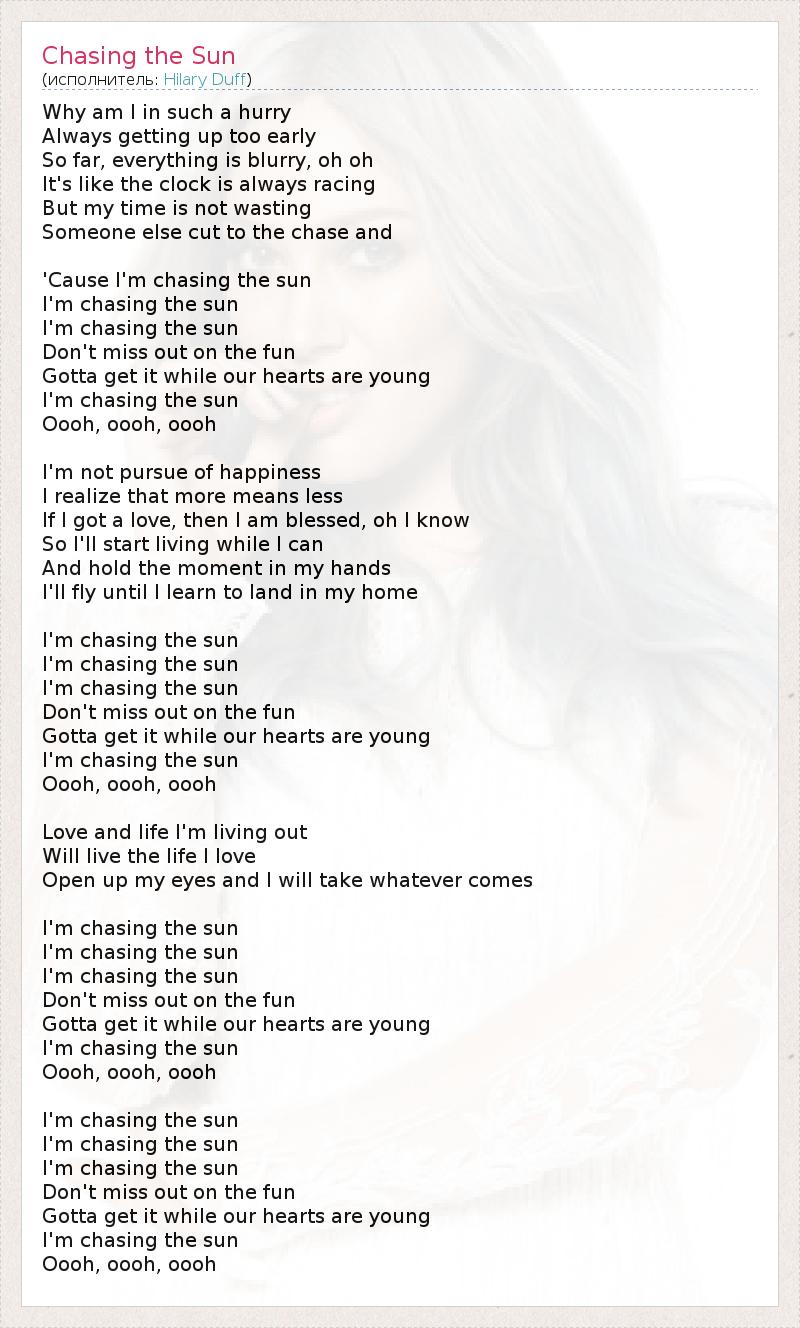 А как ты думаешь, о чем песня "Chasing the Sun" ?