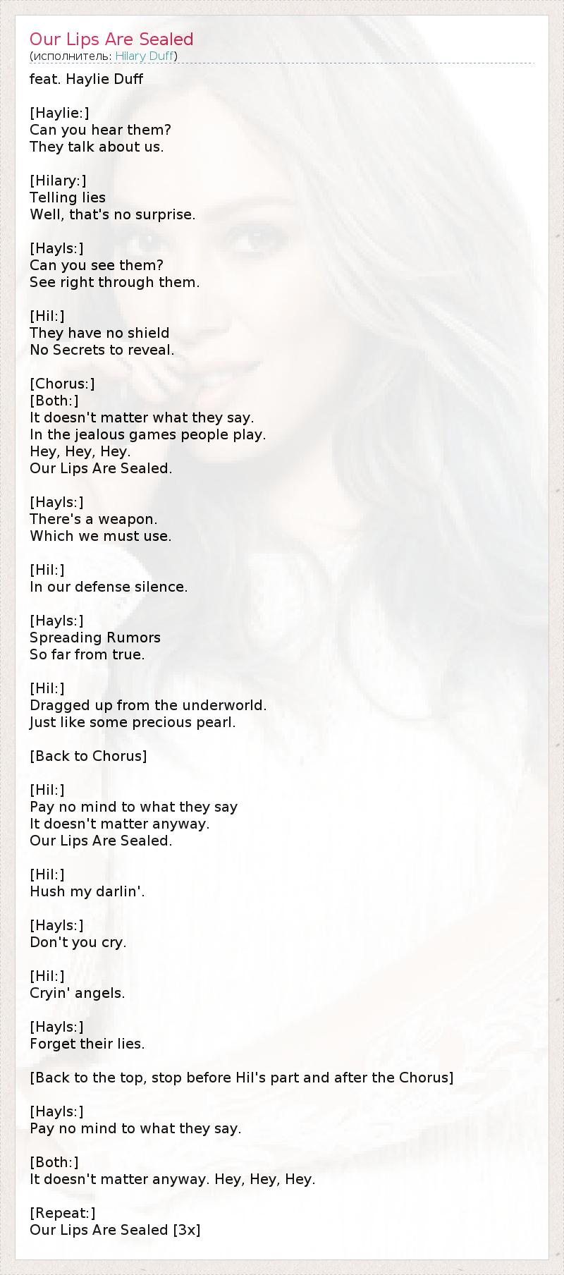 А как ты думаешь, о чем песня "Our Lips Are Sealed" ?
