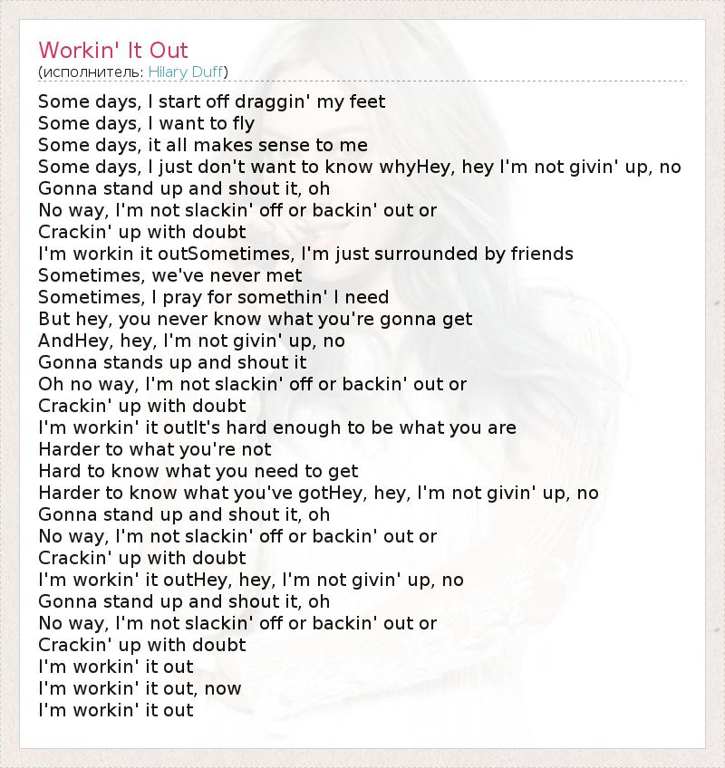 А как ты думаешь, о чем песня "Workin' It Out" ?