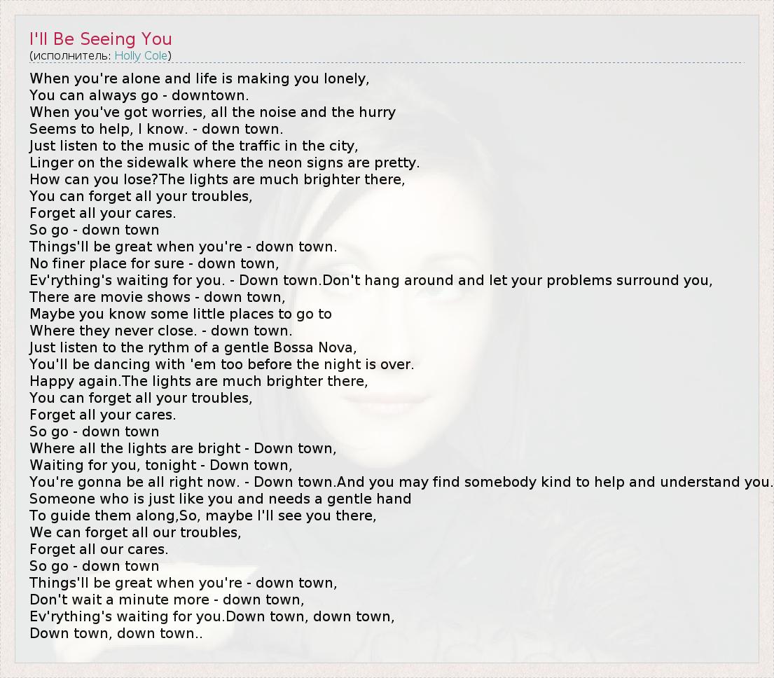 А как ты думаешь, о чем песня "I'll Be Seeing You" ?