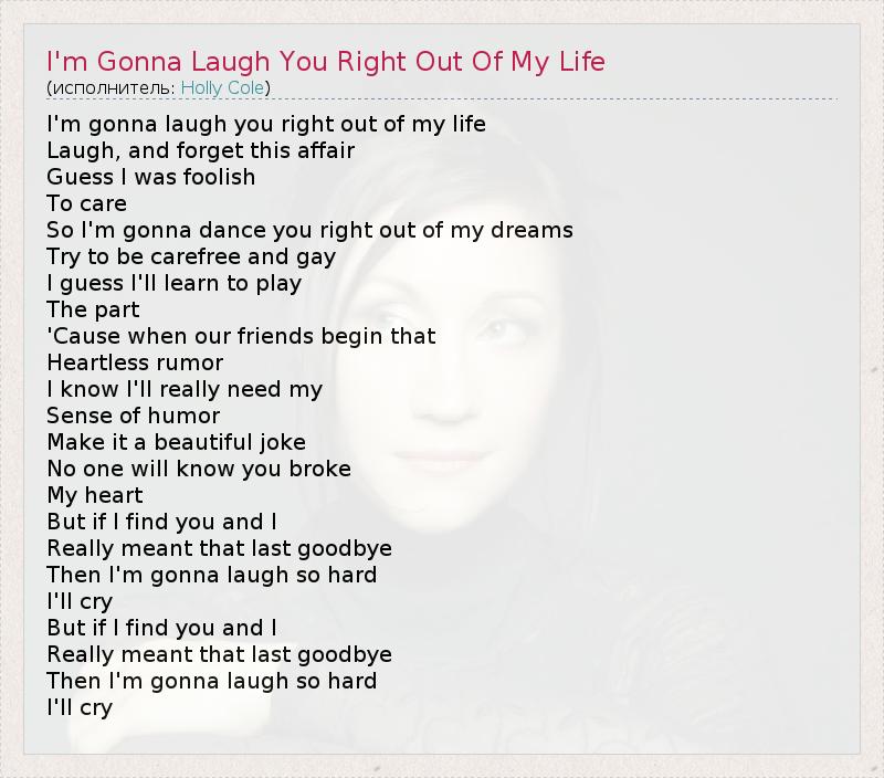 А как ты думаешь, о чем песня "I'm Gonna Laugh You Right Out Of My Life" ?