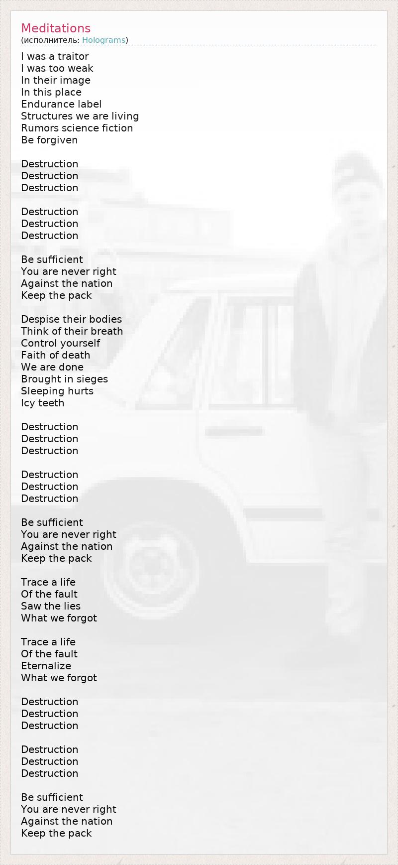 Это интересно:Despite being perpetually too poor to drink dusted dive-bar drafts, Stockholm’s Holograms still manage to projectile vomit their fare share of poison. Their regurgitations originate more from the nausea inherent with menial labor in the desolate warehouses of Sweden than alcohol abuse; ultimately making it more enjoyable to sift through. In defiance of their decrepit instruments (a collective estimated worth of a handful of Kronas) Holograms emit a seemingly impossible energy. Their sound synthesizes the drudgery of dismal existence with a lust for something better; echoing both the violent abandonment of punk as well as some of the electronic gloss of early 80′s new wave. Their sound has proven... продолжение