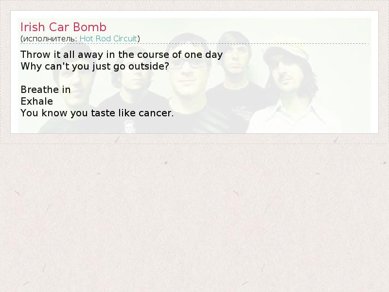 А как ты думаешь, о чем песня "Irish Car Bomb" ?