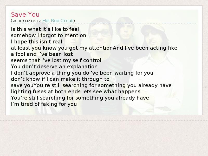 Is this what it's like to feel somehow I forgot to mention I hope this isn't real at least you know you got my attentionAnd I've been acting like a fool and I've been lost seems that I've lost my self control You don't deserve an explanation I don't approve a thing you doI've been waiting for you don't know if I can make it through to save youYou're still searching for something you already have lighting fuses at both ends lets see what happens You're still searching for something you already have I'm tired of faking for you