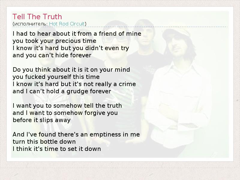 А как ты думаешь, о чем песня "Tell The Truth" ?