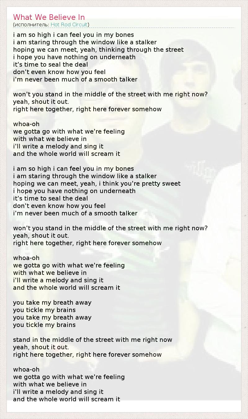 А как ты думаешь, о чем песня "What We Believe In" ?