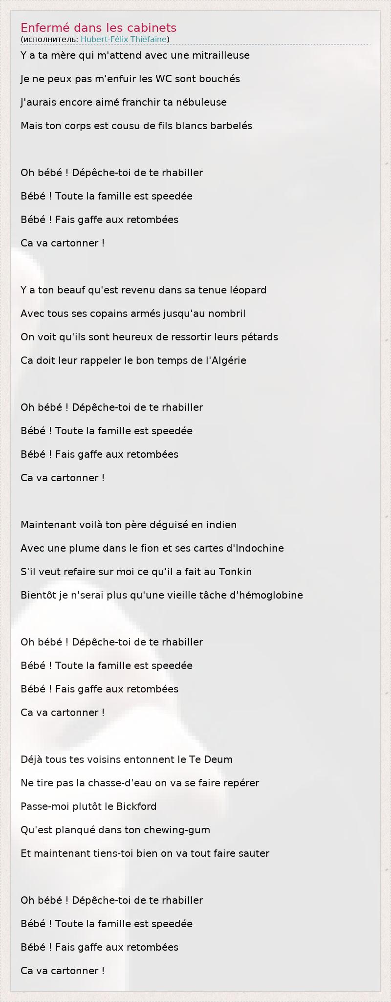 А как ты думаешь, о чем песня "Enfermé dans les cabinets" ?