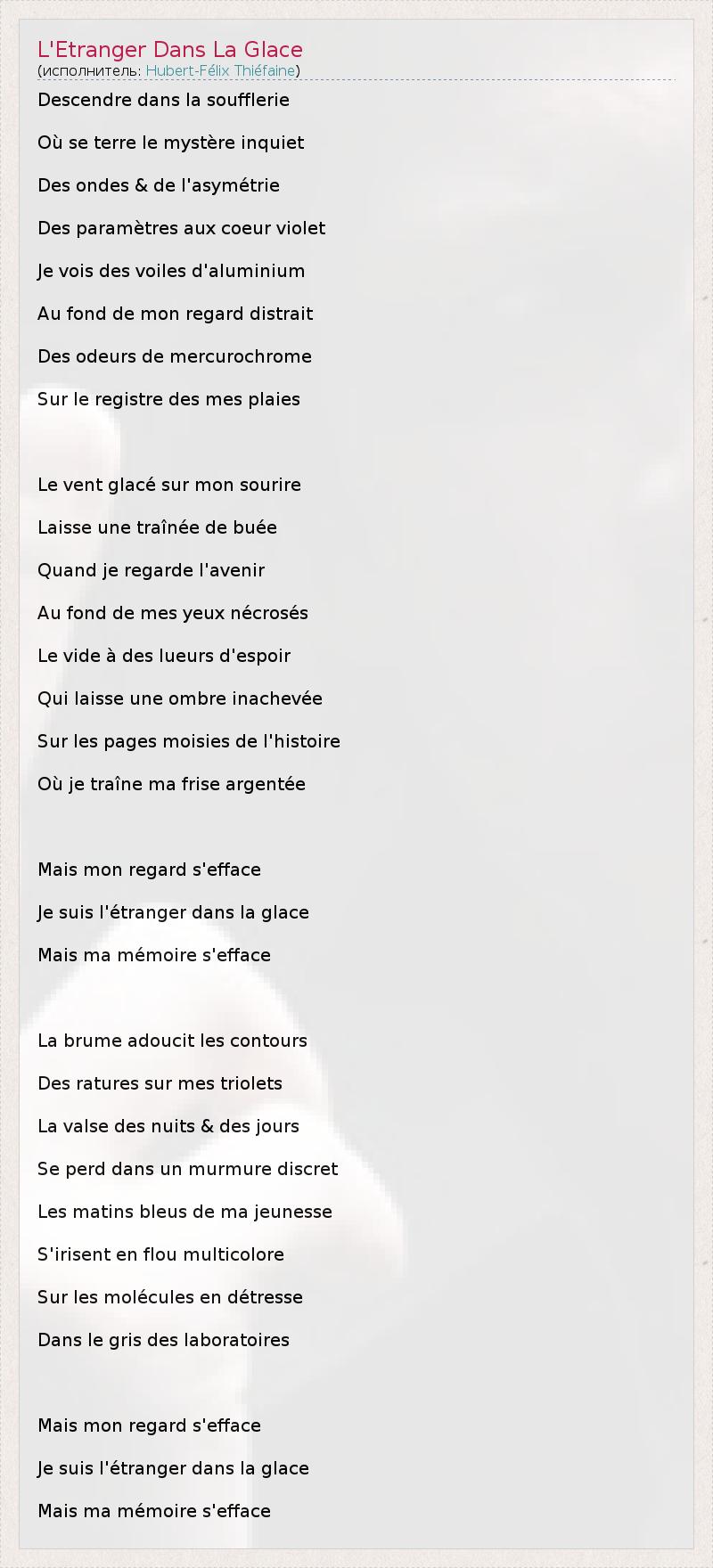 А как ты думаешь, о чем песня "L'Etranger Dans La Glace" ?