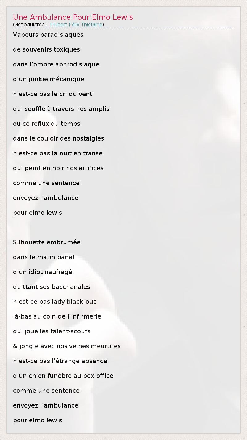 А как ты думаешь, о чем песня "Une Ambulance Pour Elmo Lewis" ?
