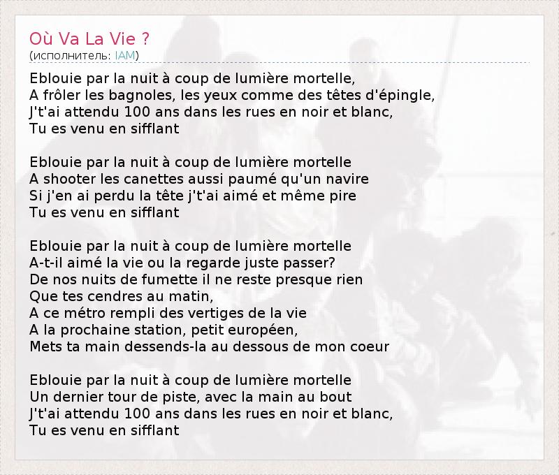 А как ты думаешь, о чем песня "Où Va La Vie ?" ?