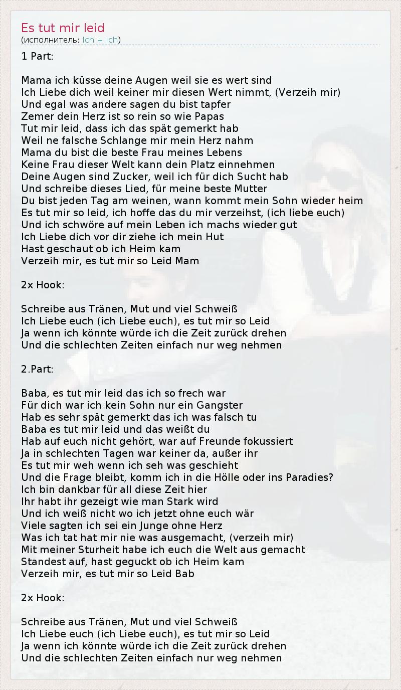 А как ты думаешь, о чем песня "Es tut mir leid" ?