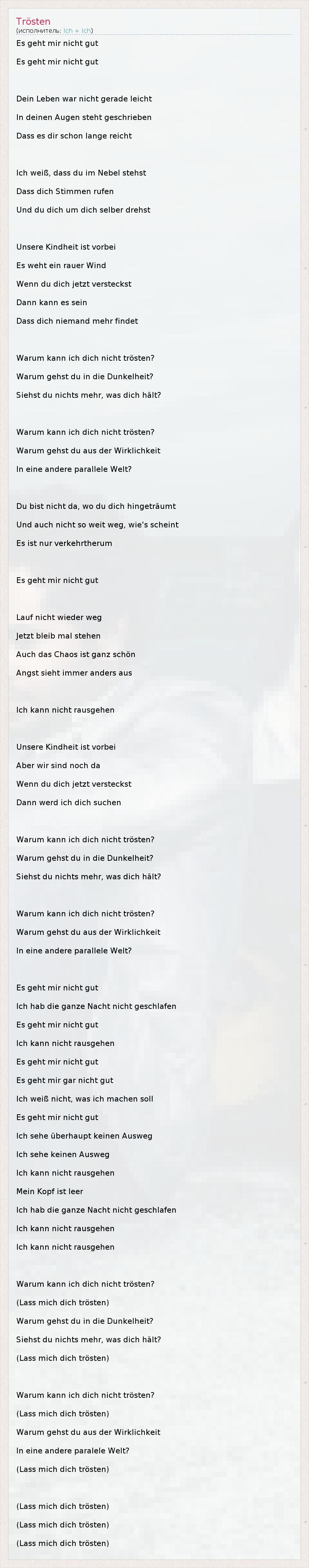 А как ты думаешь, о чем песня "Trösten" ?