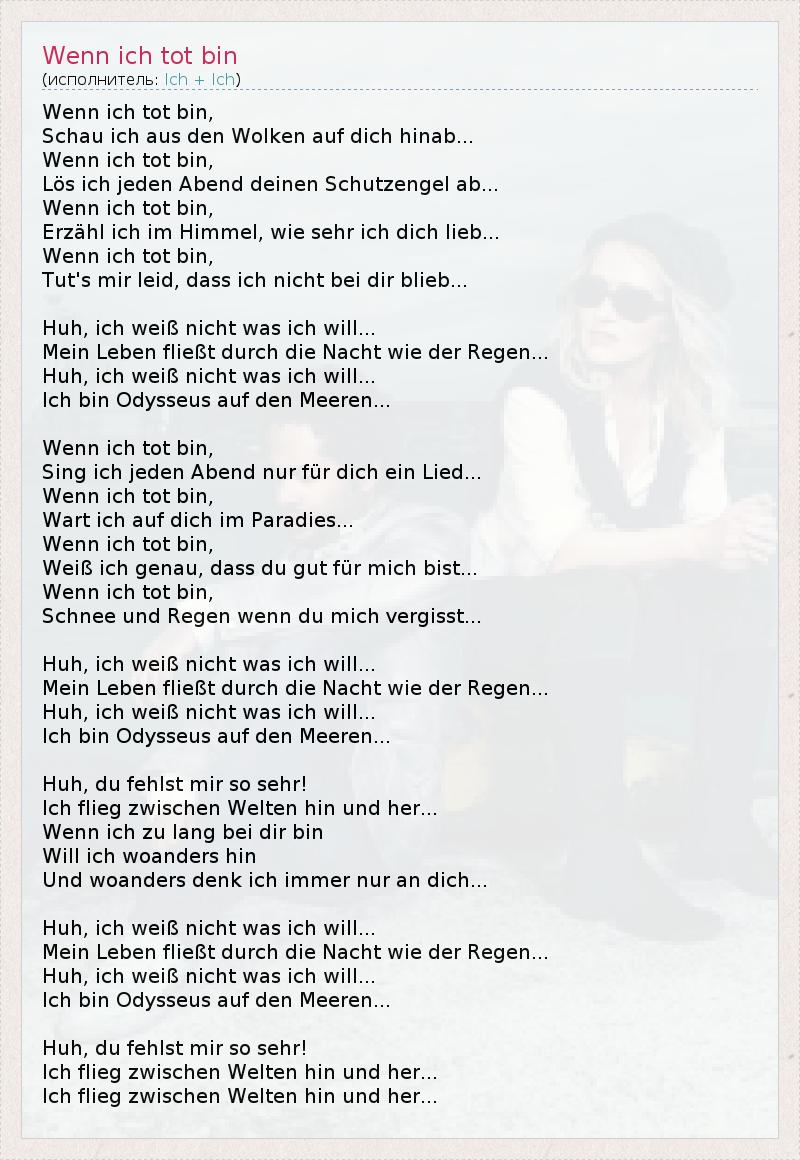 А как ты думаешь, о чем песня "Wenn ich tot bin" ?