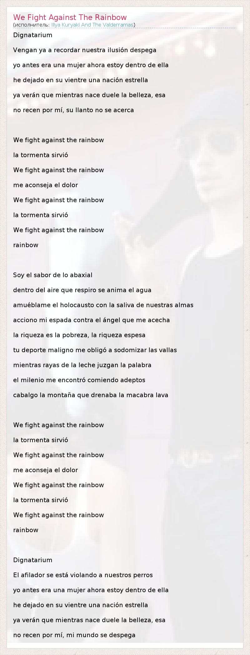 А как ты думаешь, о чем песня "We Fight Against The Rainbow" ?