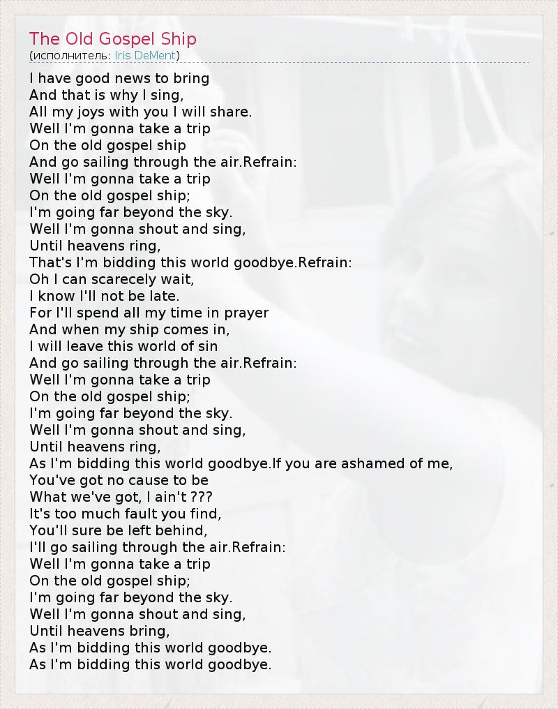 А как ты думаешь, о чем песня "The Old Gospel Ship" ?
