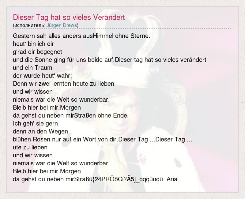 ГлавнаяИсполнителиJürgen DrewsDieser Tag hat so vieles Verändert