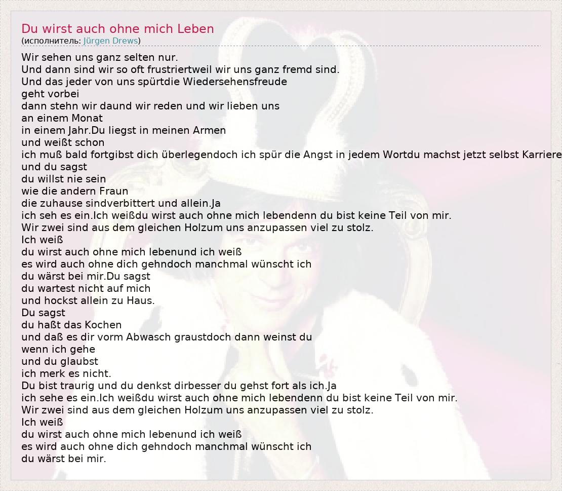 ГлавнаяИсполнителиJürgen DrewsDu wirst auch ohne mich Leben