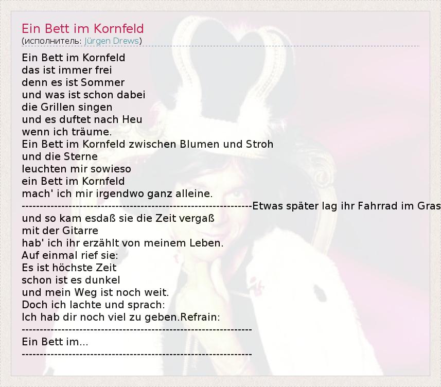 А как ты думаешь, о чем песня "Ein Bett im Kornfeld" ?