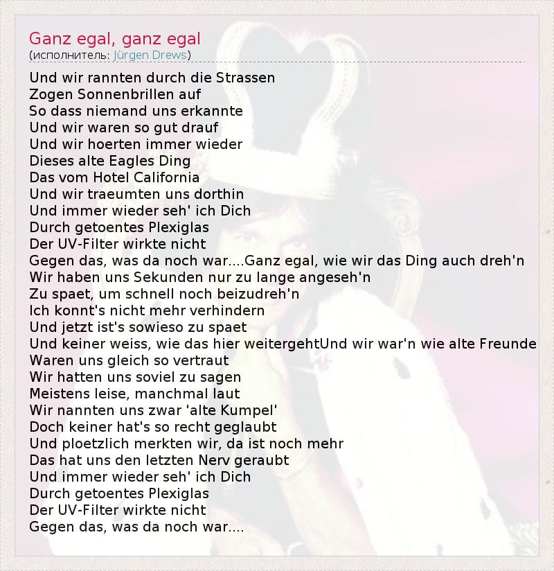 А как ты думаешь, о чем песня "Ganz egal, ganz egal" ?