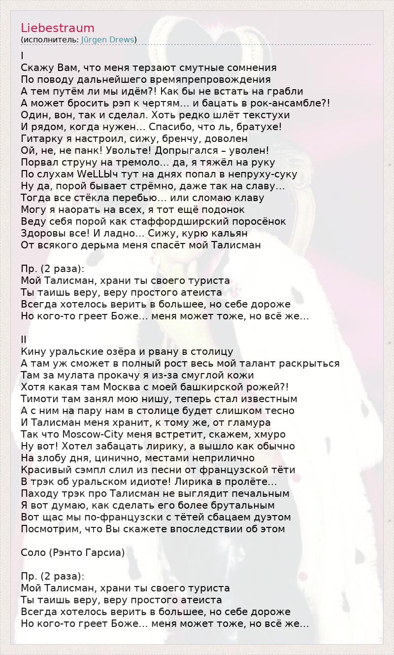 А как ты думаешь, о чем песня "Liebestraum" ?