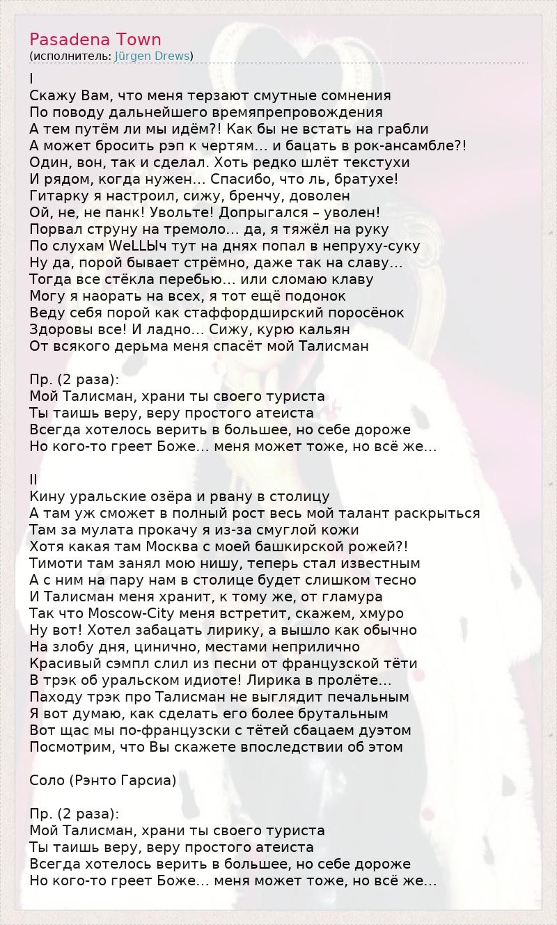 А как ты думаешь, о чем песня "Pasadena Town" ?