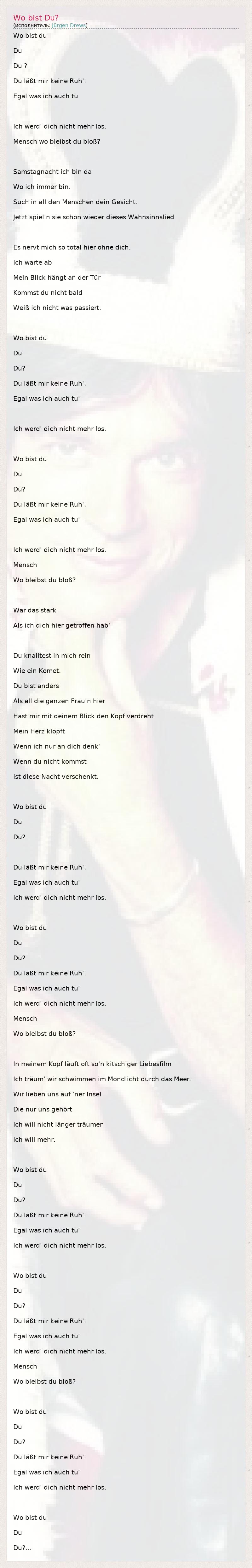 А как ты думаешь, о чем песня "Wo bist Du?" ?