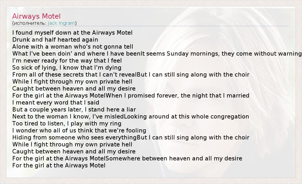 А как ты думаешь, о чем песня "Airways Motel" ?