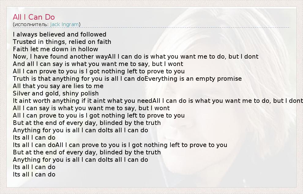 А как ты думаешь, о чем песня "All I Can Do" ?