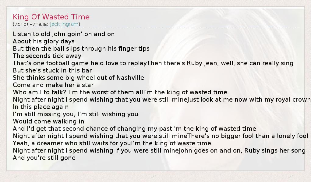 А как ты думаешь, о чем песня "King Of Wasted Time" ?