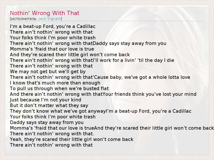 А как ты думаешь, о чем песня "Nothin' Wrong With That" ?