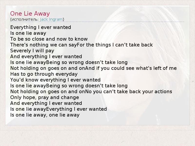А как ты думаешь, о чем песня "One Lie Away" ?