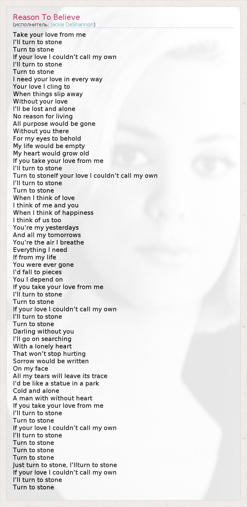 А как ты думаешь, о чем песня "Reason To Believe" ?