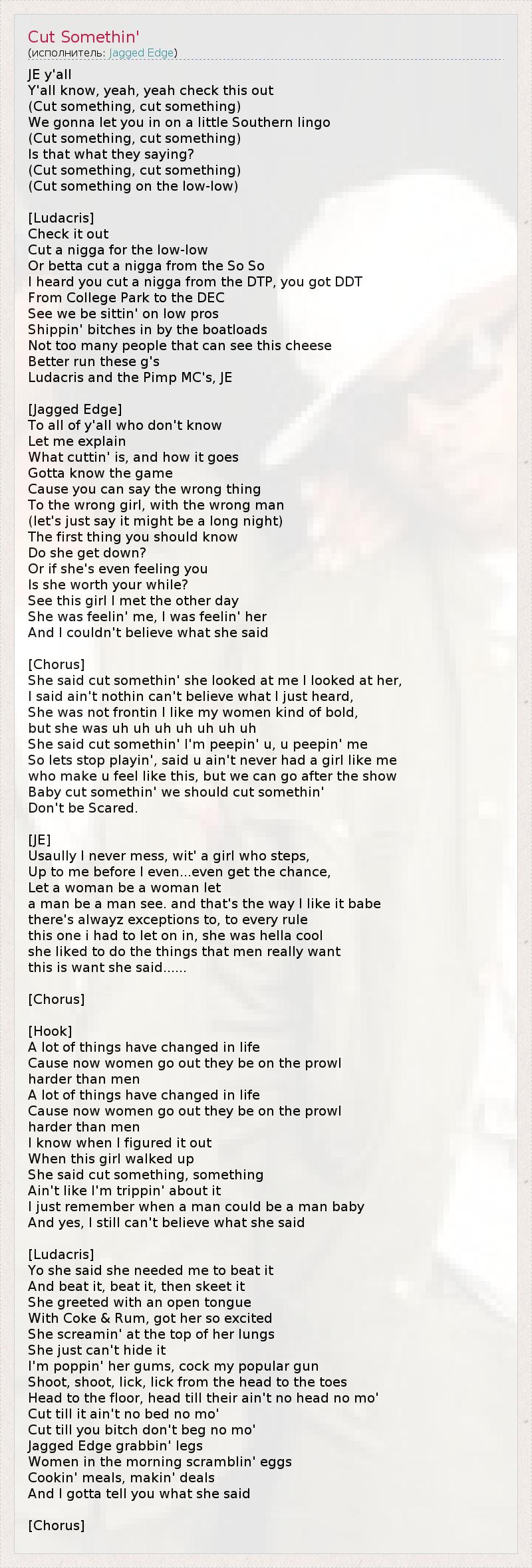 А как ты думаешь, о чем песня "Cut Somethin'" ?