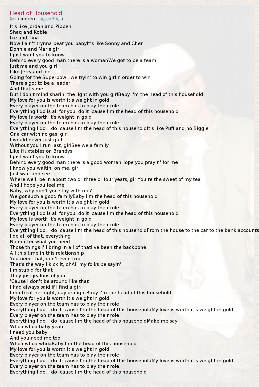 Everything I do is all for youI do it 'cause I'm the head of this household