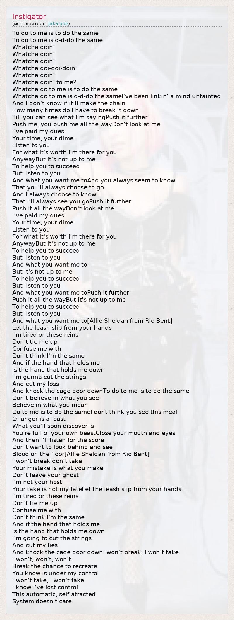 Whatcha do to me is d-d-do the sameI've been linkin' a mind untainted