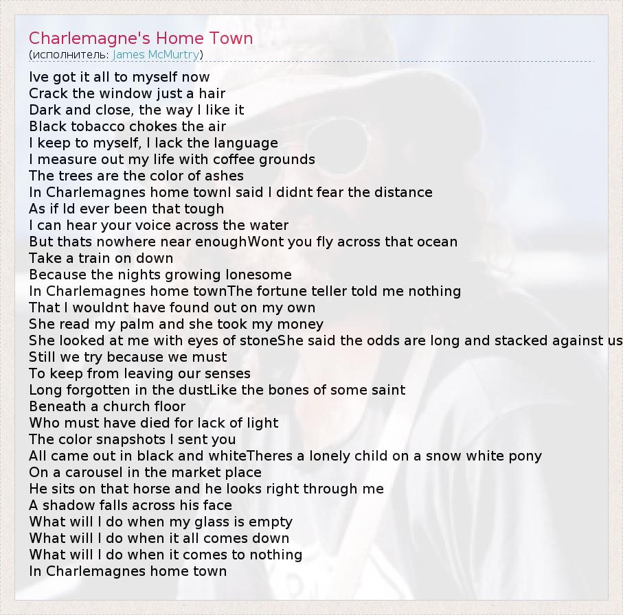 А как ты думаешь, о чем песня "Charlemagne's Home Town" ?