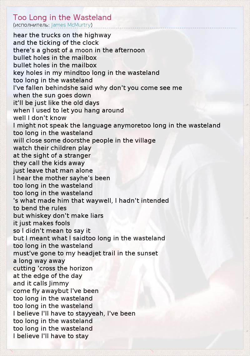 А как ты думаешь, о чем песня "Too Long in the Wasteland" ?
