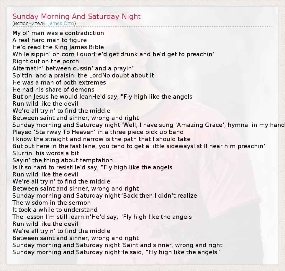 А как ты думаешь, о чем песня "Sunday Morning And Saturday Night" ?