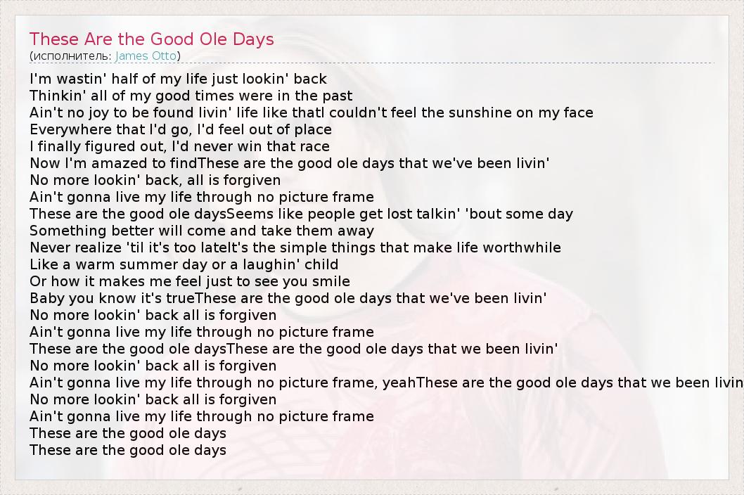 А как ты думаешь, о чем песня "These Are the Good Ole Days" ?