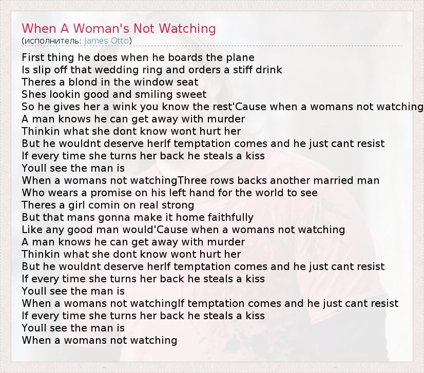 А как ты думаешь, о чем песня "When A Woman's Not Watching" ?