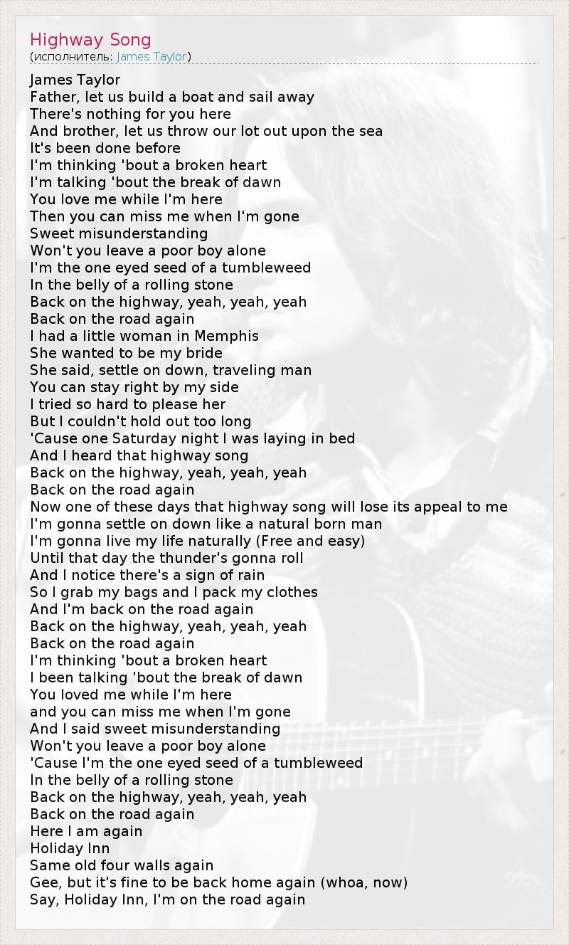 Это интересно:Джеймс Тэйлор родился 12 марта 1948 года в Бостоне (Массачусетс) в семье Исаака Тэйлора - резидента массачусетского госпиталя Massachusetts General Hospital, и Гертруды Вудард – в прошлом оперной певицы. Джеймс был вторым ребенком из пятерых детей.Когда Джеймсу исполнилось три года, его семья отправилась в Северную Каролину, где родитель получил должность ассистента профессора медицины в Университете... продолжение