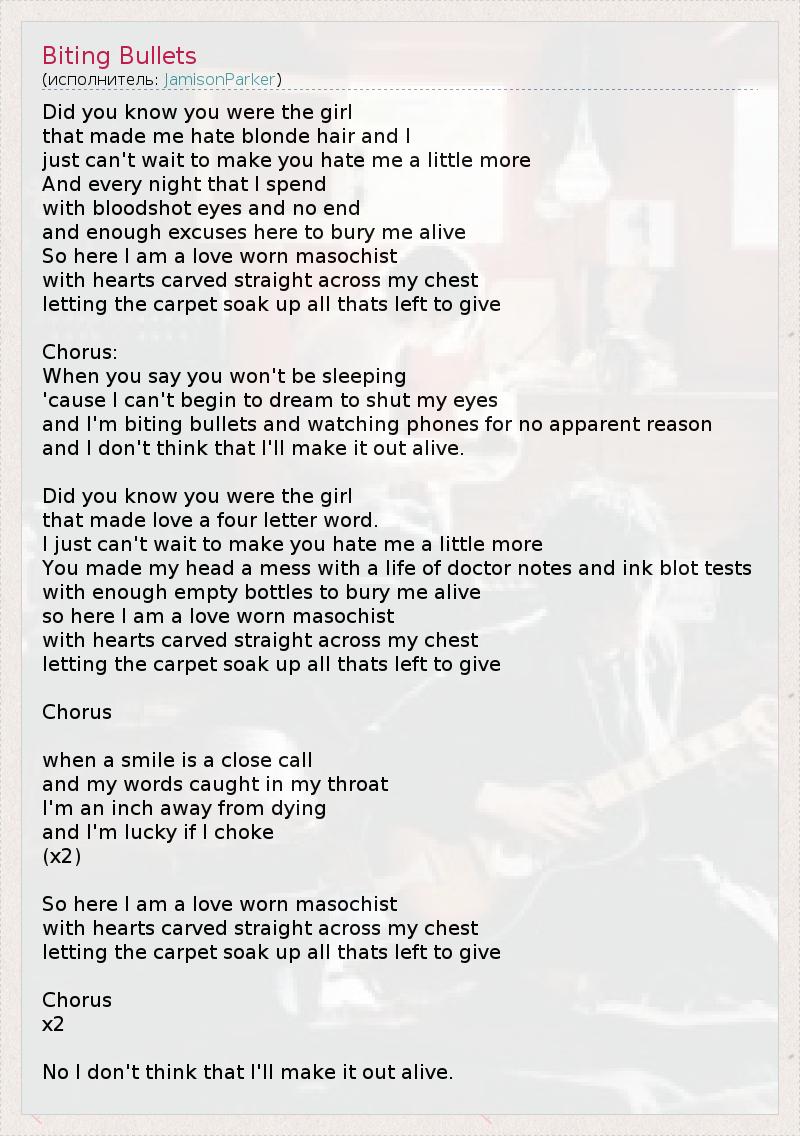А как ты думаешь, о чем песня "Biting Bullets" ?
