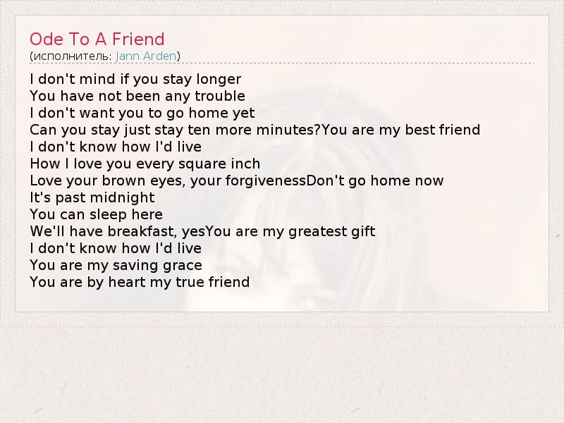 А как ты думаешь, о чем песня "Ode To A Friend" ?