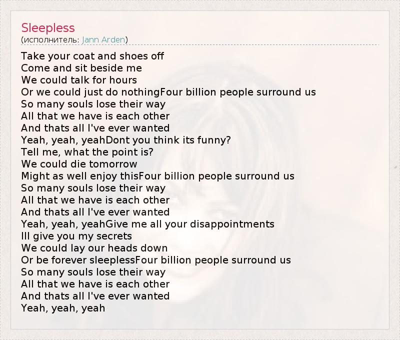 А как ты думаешь, о чем песня "Sleepless" ?