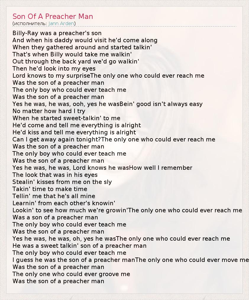 А как ты думаешь, о чем песня "Son Of A Preacher Man" ?