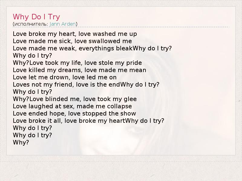А как ты думаешь, о чем песня "Why Do I Try" ?