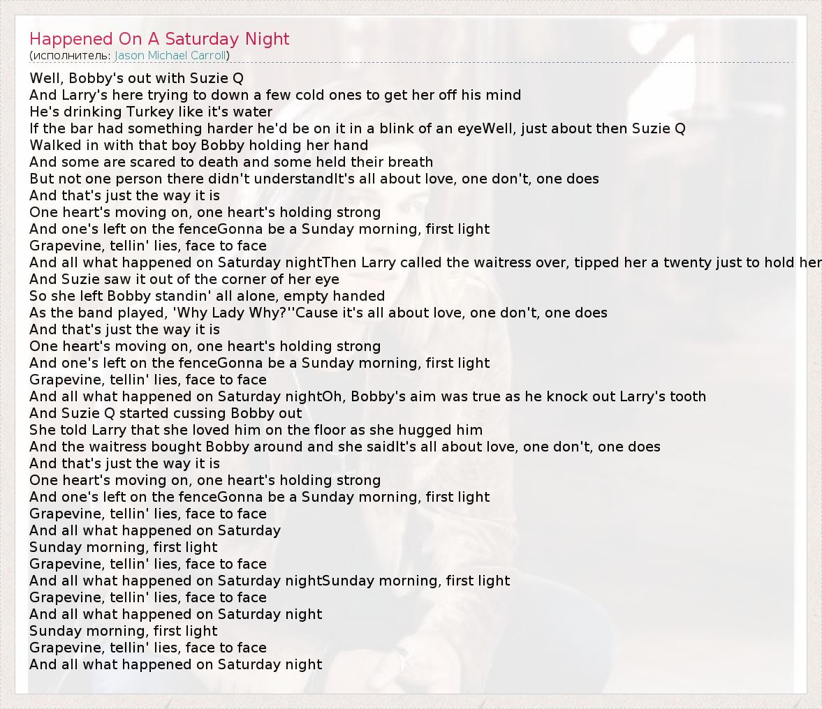А как ты думаешь, о чем песня "Happened On A Saturday Night" ?